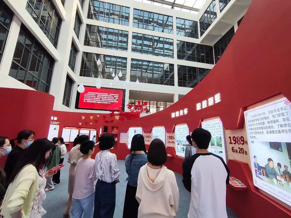 近日,教师第三党支部组织全体党员参观了在图书馆一楼大厅举办的习近平总书记“六进宁师”主题展。此次展览以独特设计和丰富内容,生动呈现了习近平总书记在宁德工作期间六次莅临宁师指导工作的历史场景,为支部党员带来了一场深刻的学习体验。