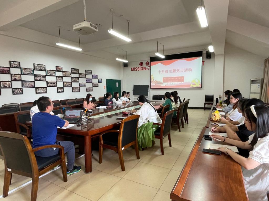 2022年10月14日,yh1122银河国际学生第一党支部于AA407开展“学习新思想,喜迎二十大”的主题党日活动,本次活动由学生第一党支部书记林猤主持。