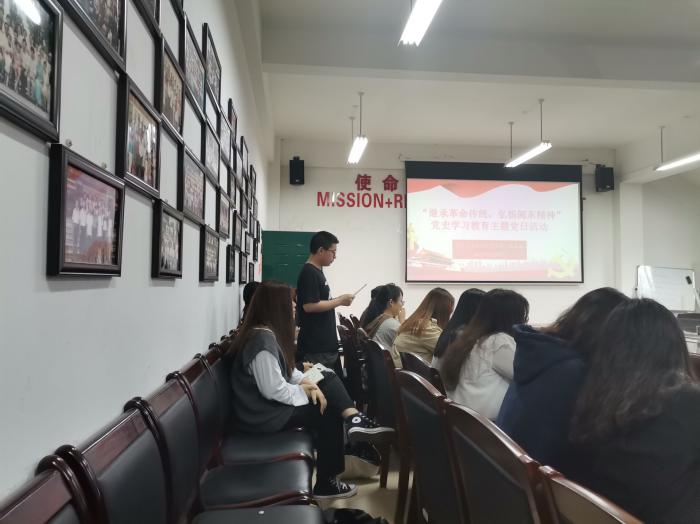 会上,林猤老师强调,党史学习教育是每名党员砥砺初心使命的“必修课”,党员同志们要做到学史明理、学史增信、学史崇德、学史力行。随后,林猤老师带领党员同志们学习了英勇的闽东红军革命先烈的光辉事迹。此外,余玲玲、陈文旭等同志作为学生代表分享了自己的心得体会,她们表示将以史为鉴、以史为师、以史为镜,从中汲取百炼成钢、砥砺奋进的力量,在新时代接续奋斗。最后,林猤老师对本次主题党日活动进行总结:希望各位党员同志从党的百年光辉历程、闽东革命斗争史中汲取奋进力量,以党史学习教育筑牢坚强战斗堡垒,传承红色基因,延续革命传统。