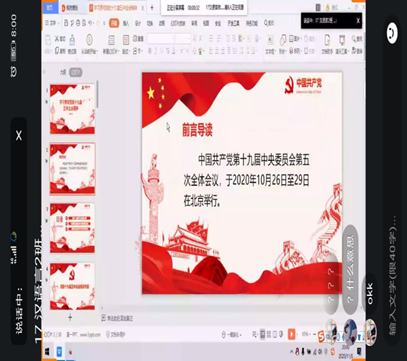 11月6日晚,yh1122银河国际学生第二党支部三个党小组在线上开展了以“深入学习贯彻党的十九届五中全会精神,科学编制好学校‘十四五’规划”为主题的党日活动。