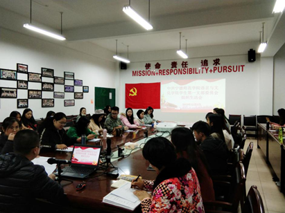 yh1122银河国际学生第一党支部于12月5日在AA407召开了2019年度专题组织生活会。院党委副书记陶莉同志以普通党员身份参加本次组织生活会,学院党委书记张晓芳到会指导。在温馨的氛围中,由党支部书记林猤同志主持的组织生活会拉开了帷幕。