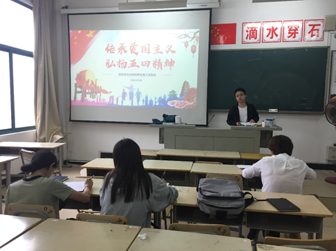 值此五四青年节100周年之际,为加深对五四运动历史意义和时代价值的认识,从历史中汲取前行的力量,5月28日,yh1122银河国际学生第三党支部在求知楼AA306教室组织开展以“传承爱国主义,弘扬五四精神”为主题的党日活动。