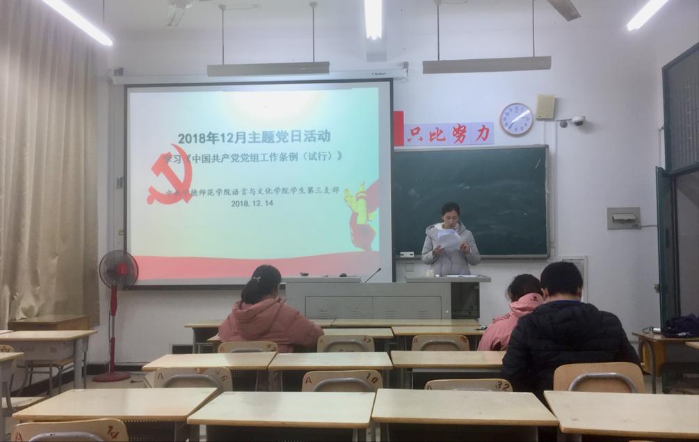 12月14日下午,yh1122银河国际学生第三支部召开《中国共产党党组工作条例(试行)》专题学习会,会议由支部书记罗梦菁主持。