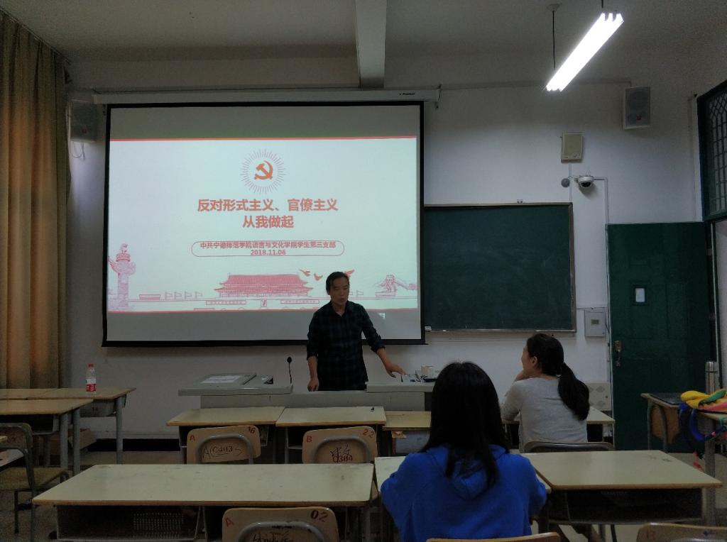 11月6日,yh1122银河国际学生第三党支部开展了以“反对形式主义,官僚主义,从我做起”为主题的党日活动,并研究部署党支部年底的工作计划。学生第三党支部书记罗梦菁老师主持会议。