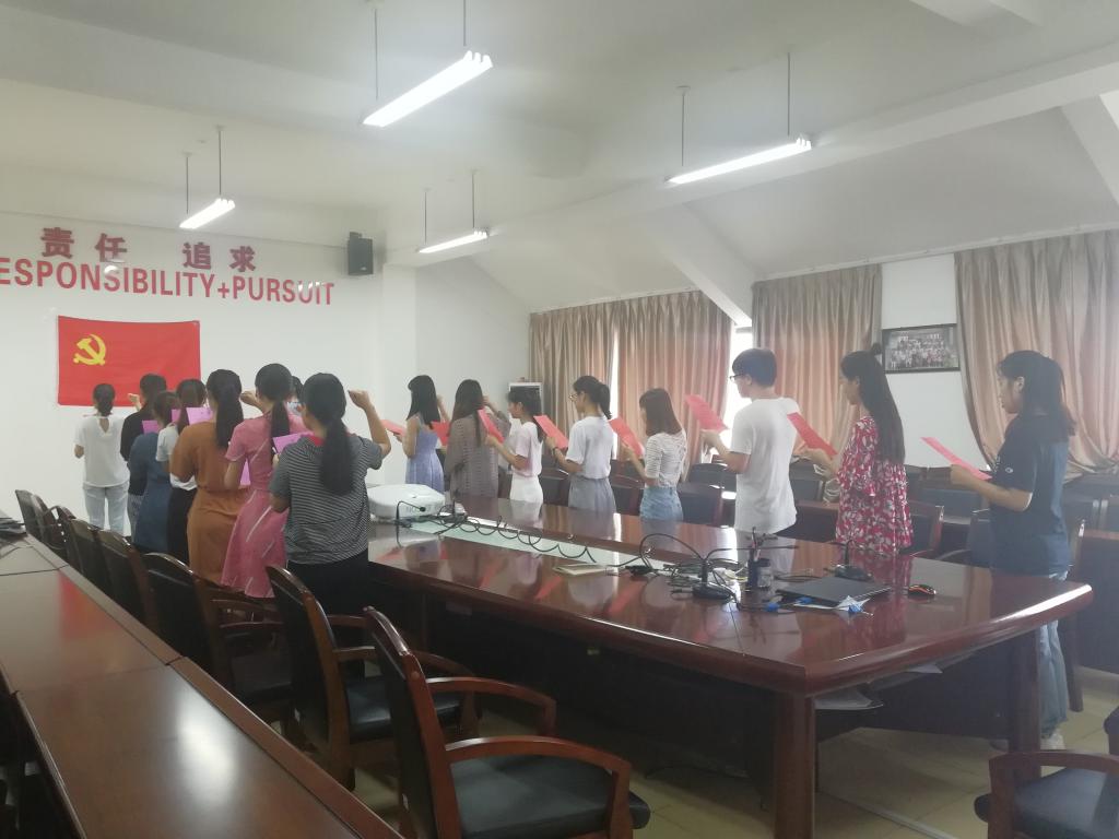 6月29日上午10点,yh1122银河国际学生第一、第二和第三党支部在AA407举行了庄严而神圣的入党集体宣誓仪式。本次活动由学生第一党支部书记王晓莹老师和学生第二党支部书记祁燕苹老师主持,本学期新发展的16名预备党员参加本次宣誓仪式。