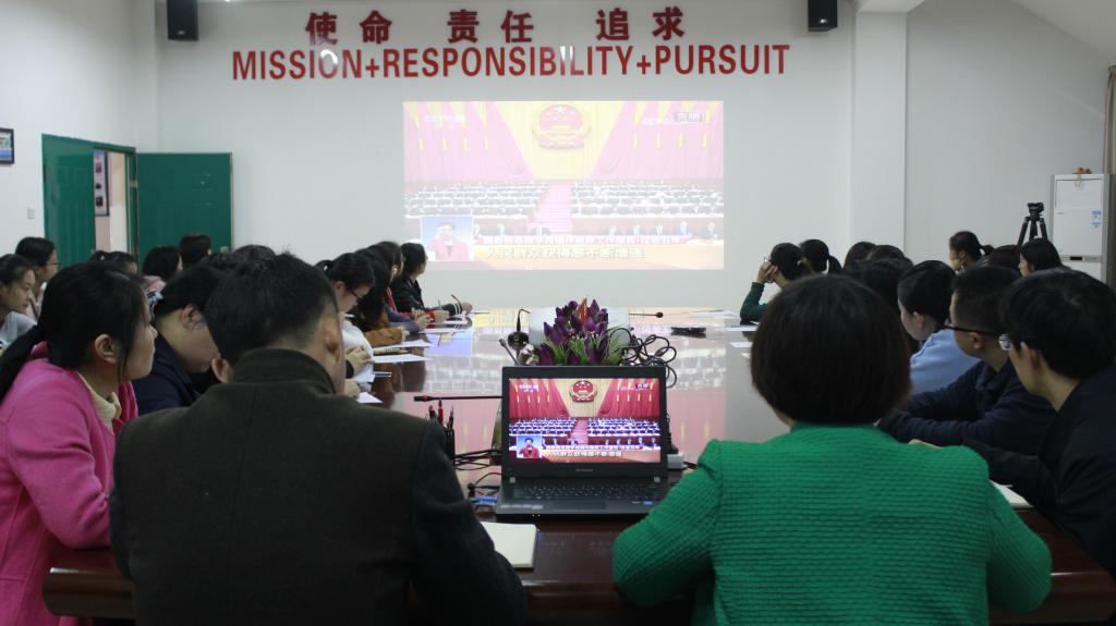 3月5日上午,第十三届全国人大一次会议在北京人民大会堂开幕,yh1122银河国际党员师生当天在会议室集中收看开幕式实况直播,感受“两会”盛况。同时结合自身工作学习生活实际,积极参与讨论“两会”热点,表示要认真学习贯彻会议精神,切实增强责任感和使命感,以更加饱满的热情,开创学习工作新局面。