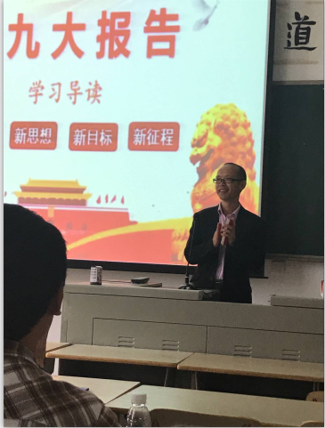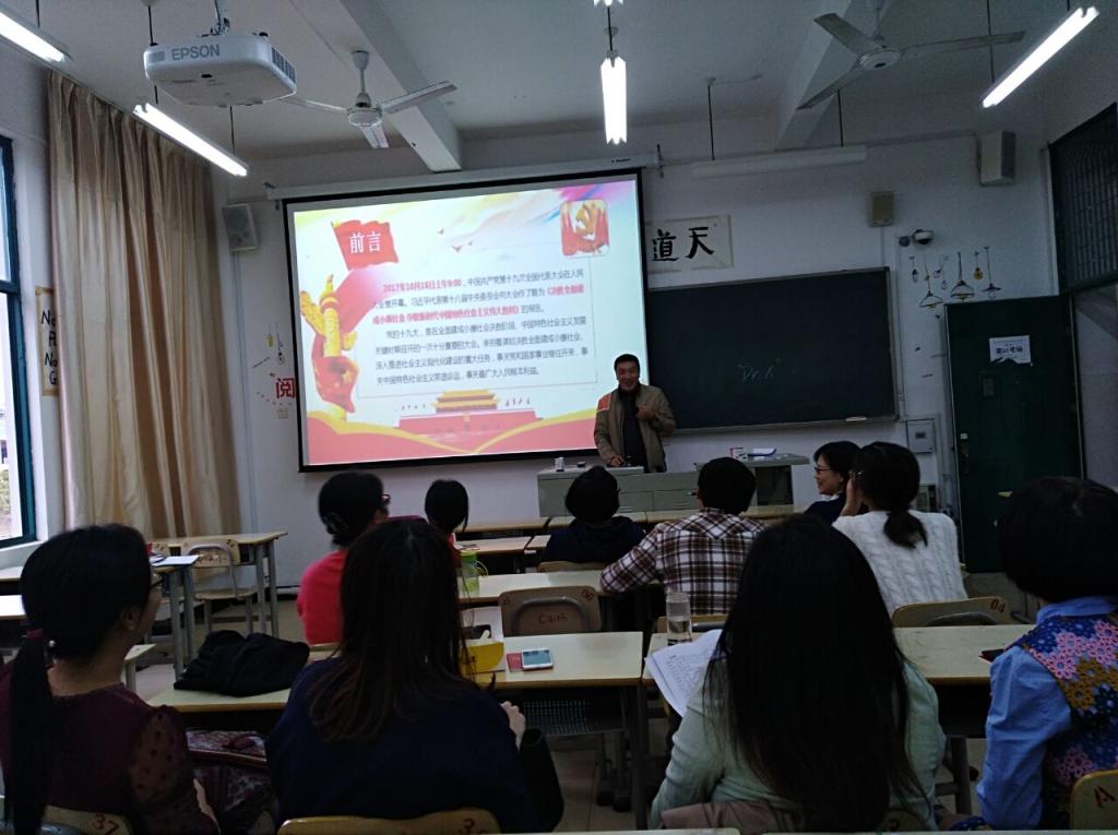 同志们欢聚AA202教室,在浓浓的气氛一起学习了十九大报告和新党章,重点学习和解读习近平新时代中国特色社会主义思想的“八个明确”,坚持和发展中国特色社会主义的“十四条基本方略”,坚定不移全面从严治党的“八个方面”,全面增强党的执政本领的“八项要求”、“四个自信”、“四个伟大”的深刻内涵和重大意义;回顾了中国共产党历次修改党章的历史背景和时代特点,解读了十九大把习近平新时代中国特色社会主义思想写入党章的深远意义。
