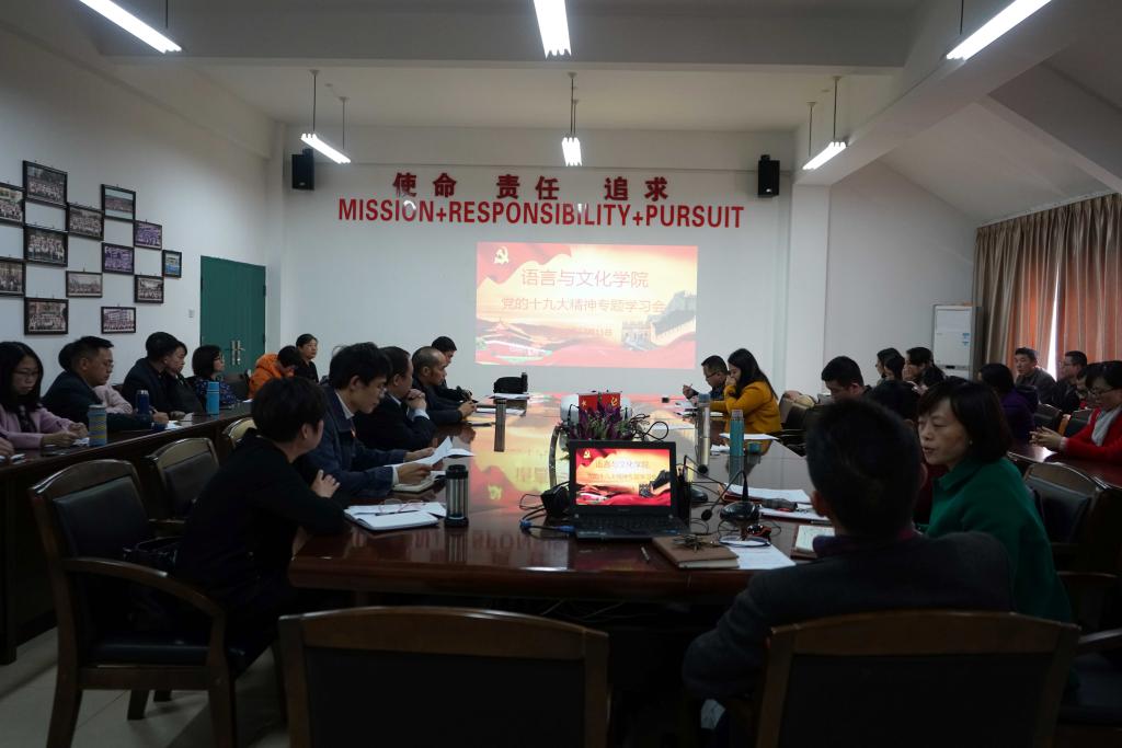 龚帆元院长传达了学校领导对我院十九大精神宣讲工作的肯定以及指出的不足之处,龚院长要求全院师生从思想上重视十九大精神的学习,要在思想上政治上行动上同以习近平同志为核心的党中央保持高度一致。认真学习十九大报告,从报告中提炼科研课题,在提高思想政治觉悟的同时增强科研能力。