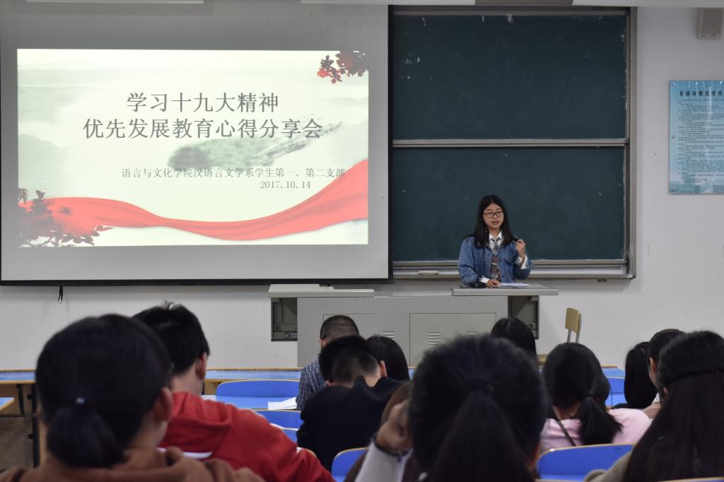 11月14日下午,中共yh1122银河国际学生第二党支部委员会和学生第三党支部委员会在求知楼A301教室召开“学习十九大精神之优先发展教育”为主题的心得分享会。学生第三支部书记罗梦菁老师主持本次活动,两个支部的党员、预备党员参加了本次活动。党支部所有党员和预备党员在会前分成若干党小组自发学习了十九大精神中优先发展教育的精神。