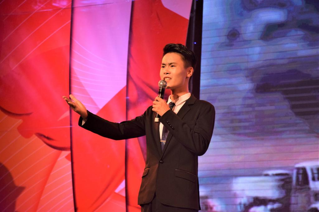 大赛以经典诗词为主要内容,弘扬红色传统,传承红色基因,进一步激发广大师生学习十九大精神和爱国热情。来自全校各院的十组选手深情朗诵了《永生的和平鸽》、《我的祖国》、《你是我永远的新娘》、《边防线上的你和我》等经典诗篇。朗诵的形式多种多样,包括独诵、双人诵、小组诵等形式,极具艺术表现力和感染力。“我志愿加入中国共产党,拥护党的纲领,遵守党的章程……”在活动开场,大家一起重温了入党誓词,共唱了国歌《义勇军进行曲》,把现场的气氛推到了高潮。我院李益长老师的原创作品《滴水穿石闽东情 同心共筑中国梦》谱写了闽东人民为“摆脱贫困”和实现“中国梦”的努力征程,体现了闽东人民的智慧和齐心建设美好家园的欣欣向荣。“谁说军嫂没有大义,那是奉献者最美丽的心早已把家国情怀凝成誓言,将不朽的爱情织进了鲜红的党旗里。”《我是你永远的新娘》是一个身着洁白婚纱的“新娘”为大家讲述军嫂背后的感人故事,引起现场观众的一阵阵热泪和掌声。《边防线上的你和我》通过两位朗诵者的慷慨激情把边防战士驻守边境的生活场景体现在大家面前,歌颂了我们的英雄——守护着祖国的边陲的边防战士。yh1122银河国际的宋子菁同学朗诵的《痛祭赵一曼》向大家讲述着抗日巾帼赵一曼被敌人抓获在严刑拷打下依然坚持保守党的秘密直到最后,牺牲前给儿子的信更是让人感动,这就是共产党人无上的信仰和不屈的魂魄,鼓舞人心的故事引得现场观众感动落泪。yh1122银河国际林辉琳老师改编的诗歌作品《百年侨批》,主要体现了在祖国积贫积弱的时代,一封封侨批尽展华侨血泪史和爱国情怀。
