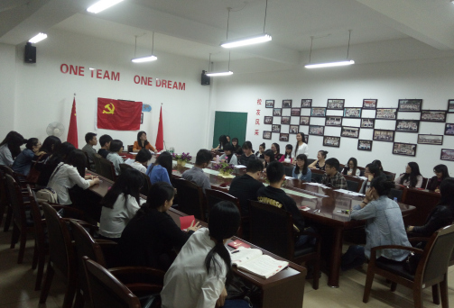 2016年5月20日晚8点,英语系学生党支部“两学一做”专题学习会于求知楼AA407召开。出席本次会议的有英语系学生第一党支部书记王晓莹、英语系学生第二党支部书记元佳珺和全体学生党员,本次会议由英语系学生第一党支部书记王晓莹老师主持。