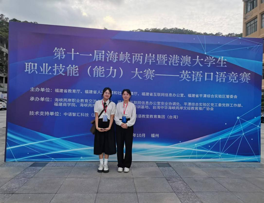 2024年10月19日由福建省教育厅、福建省人力资源和社会保障厅、福建省互联网信息办公室、福建省平潭综合实验区管委会举办的第十一届海峡两岸暨港澳大学生职业技能(能力)大赛英语口语竞赛,经过两轮激烈角逐,我院学生表现出色,黄心怡荣获本科组一等奖,阮丹妮荣获本科组三等奖。