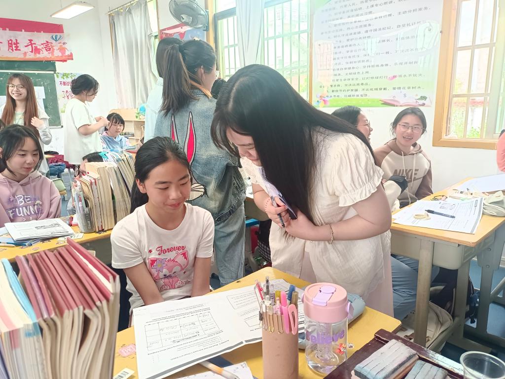 课堂上,蔡其访老师幽默风趣的教学方式深受同学们的喜欢。同学们认真观摩学习并记录整个教学过程,体会教学方法,感受活跃的课堂氛围。课后,同学们与七年(2)班的学生进行一对沟通交流,并分享英语学习的技巧。整个过程,学生积极配合,相处融洽,收获颇多。
