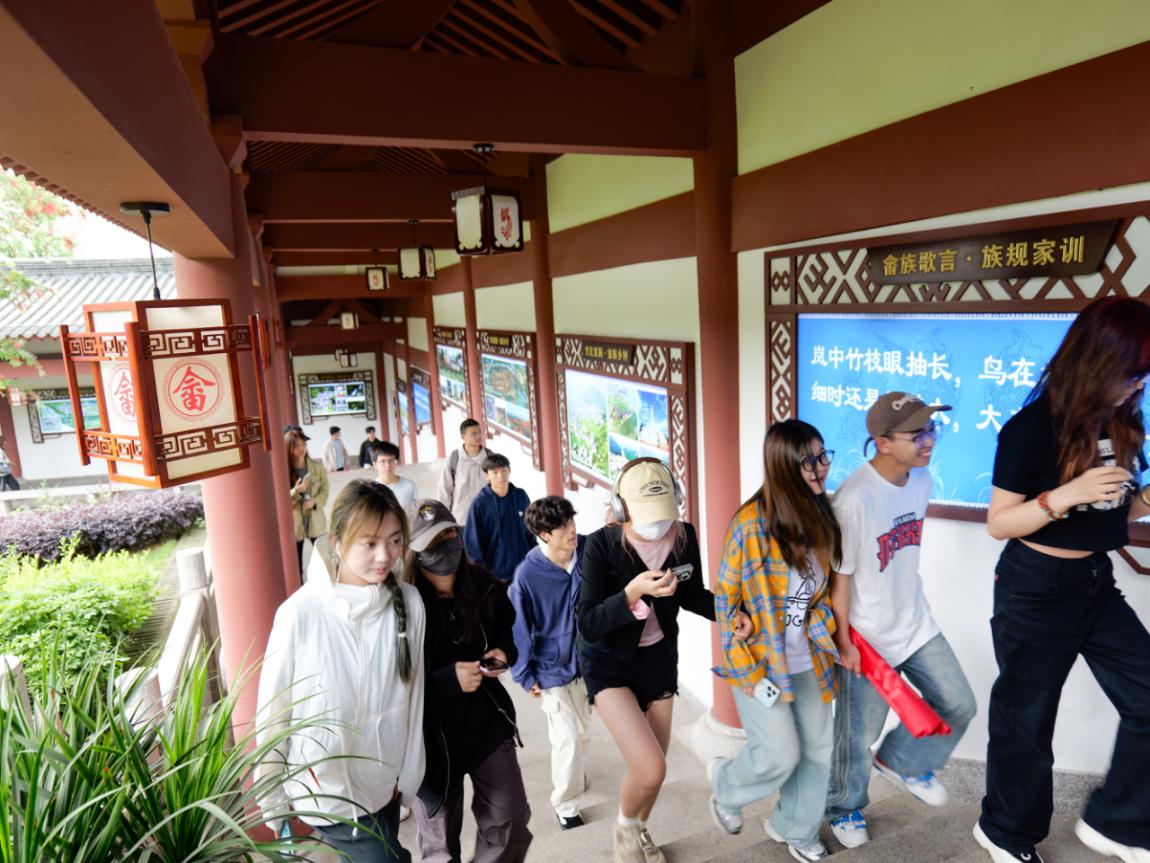 2024年4月26日,在少数民族预科部主任吴梅芳老师的带领下,宁德师范学院23级少数民族预科班全体同学及部分党员教师,于上午8:00出发第一站到达中华畲族宫,同学们参观了畲族文化和畲族服饰、首饰等文化遗产,之后同学们还开展了扔沙包、持球接力赛等系列文体活动。