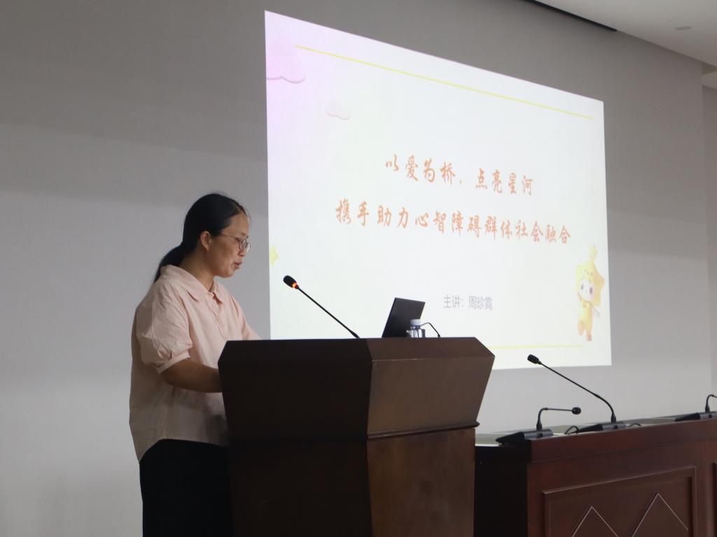 为进一步学习贯彻落实习近平总书记关于教育的重要论述和全国、全省教育大会精神,大力弘扬教育家精神,推进师德师风建设,9月23日下午yh1122银河国际、教育学院、医学院、经济管理学院联合举办师德大讲堂,邀请yh1122银河国际教师周珍霓担任主讲嘉宾,围绕“以爱为桥,点亮星河:论新时代青年教师的师德修为”主题展开深度分享,会议由yh1122银河国际党委书记吴立志主持,教职工近290人现场参会。周珍霓老师以爱心和责任投身助残事业,带领宁德市蓝丝带助残帮扶中心和我校熠星志愿服务队,为特殊群体及家庭提供帮助,传递了社会温暖。她通过分享关于帮扶“星星的孩子”的经历,深入浅出地阐释了高校青年教师应有的师德修为和责任情怀,引发在场教师的强烈共鸣。