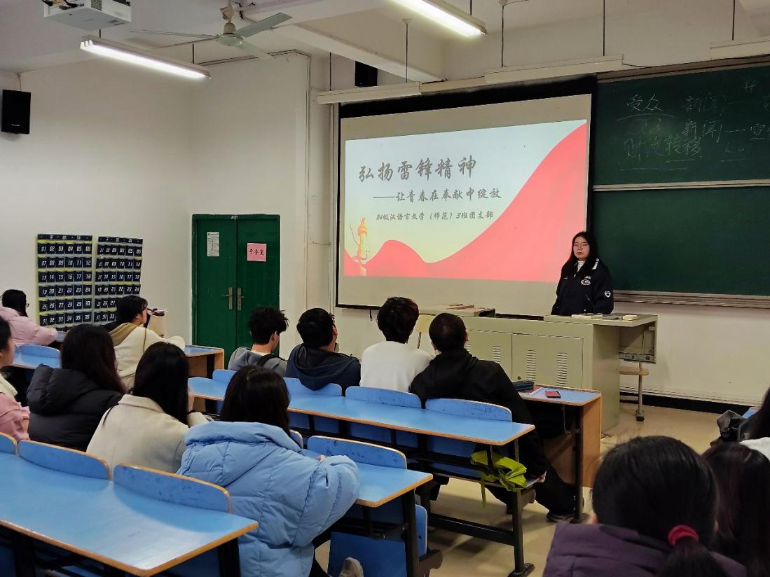 活动过程中,各班团支部书记通过PPT讲解、观看雷锋事迹视频等形式,引导同学们深入了解雷锋同志的故事,感悟雷锋精神,呼吁同学们传承雷锋精神,坚定爱党爱国的崇高理想和坚定信念,并结合自身实际,践行服务人民、助人为乐的奉献精神和锐意进取、自强不息的创新精神,从身边的一点一滴开始做起。