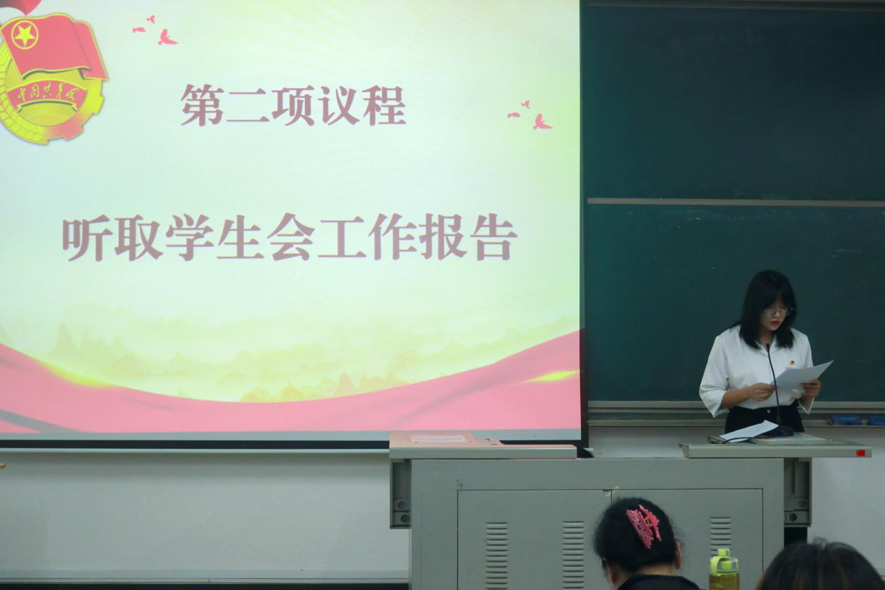 大会听取并审议了由学生会主席团成员江颖代表上一届学生委员会所作的工作报告,报告全面总结了过去一年我院在思想政治引领、校风学风建设等方面取得的成绩,并提出对下一年学生会工作的未来展望。