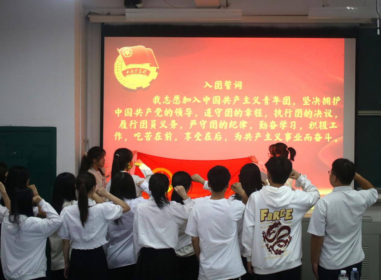 为进一步推动“三全育人”综合改革试点工作,深入学习宣传贯彻习近平新时代中国特色社会主义思想和党的二十大精神,2024年5月10日下午,我院团委在求知楼A201教室举办“传承五四精神,青春挺膺担当”主题活动暨新团员入团宣誓仪式。院党委书记吴立志、院团委书记元佳珺、各班级团员代表以及新发展团员出席本次活动。