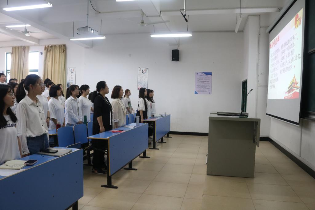 语院团委副书记王嘉宁带领新团员进行入团宣誓