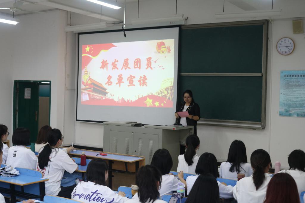院团委书记元佳珺宣读了新发展团员名单并向新团员表示热烈祝贺。为强化团员意识,在活动中,大家还一同观看“共青团史”视频,学习了团章,团徽正确的佩戴方式等知识。