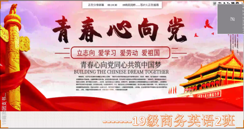 除了线上沙龙外,我院还组织同学们学习观看了“学习强国”平台举办的“让青春为祖国绽放”网上主题团课,了解各地代表性精品主题团日活动和文化产品,开阔眼界,激发了青年一代为祖国发展不懈奋斗的理想信念。