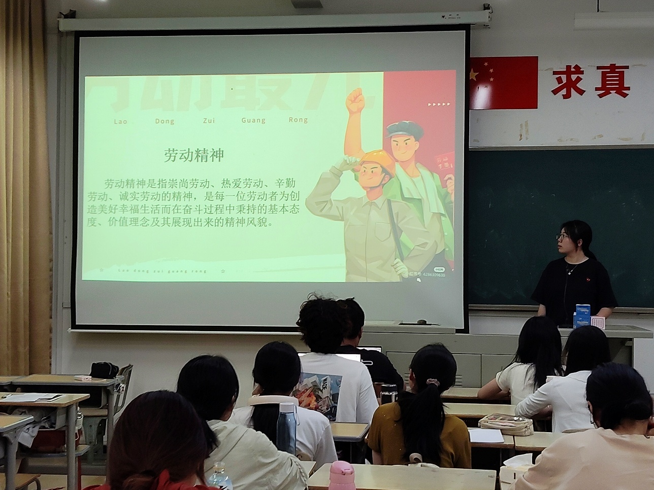 活动期间,各班团支部书记采取PPT展示、观看纪录片等方式开展专题学习活动,引导同学们深入学习劳动模范的先进事迹,理解在迈向全面建设社会主义现代化国家新征程、向第二个百年目标奋斗的当下,弘扬劳动精神的重大意义。营造出劳动最光荣、劳动最崇高、劳动最伟大、劳动最美丽的社会风尚,引领同学们努力成长为德智体美劳全面发展的社会主义事业建设者和接班人,为推进中国特色社会主义现代化建设贡献青春力量。