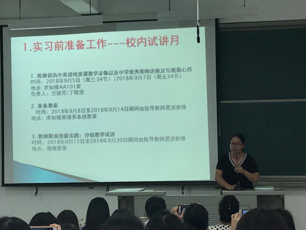 9月4日下午,yh1122银河国际英语系在求知楼A301召开2019届英语系学生实习动员大会。
