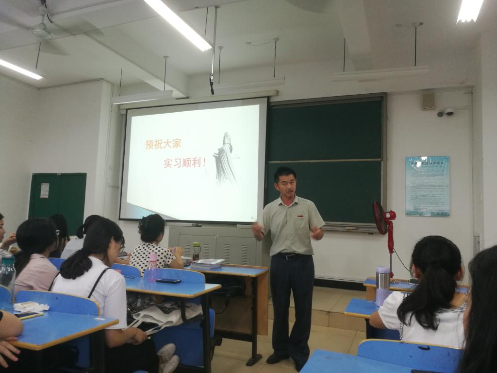 在会上,游灼梅老师首先对实习工作的开展做个各方面详细介绍,其中包括:实习时间、实习目的、实习前准备工作等。龚帆元院长再次号召全体学生要做好准备,并对实习工作的一些方面举了详细的例子进行阐释,均取得了良好的反响,同学们倍受鼓舞。