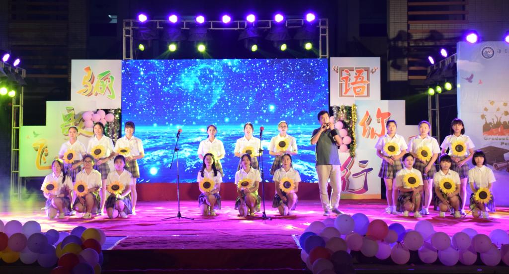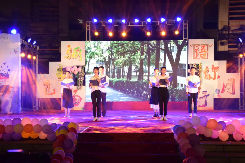 6月12日晚,我院在东侨校区图书馆门前广场举办以“骊歌飞扬,‘语’你同行”为主题的毕业晚会,送别我院2018届毕业生。院长龚帆元,院党委书记张晓芳,副院长陈丽冰,院党委副书记陶莉与数百名师生们一同观看了本次晚会。