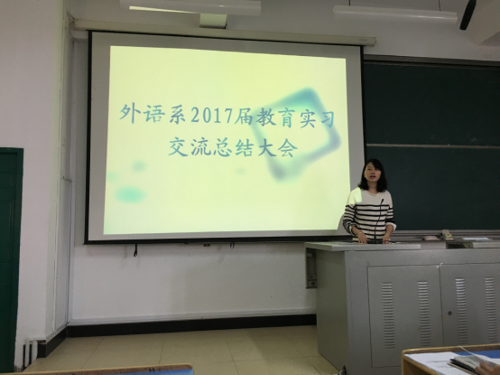 龚帆元主任对本届实习工作做了点评,祝贺全体同学圆满完成实习任务,发扬了团队精神。他在讲话中指出,要做好英语老师,必须永远在路上,必须夯实 英语基础,熟练掌握教学技能,不断努力。他同时希望同学们通过实习找准目标,在学业、就业等方面继续取得更好成绩。最后各实习指导教师也就指导工作与同学们进行简短交流。