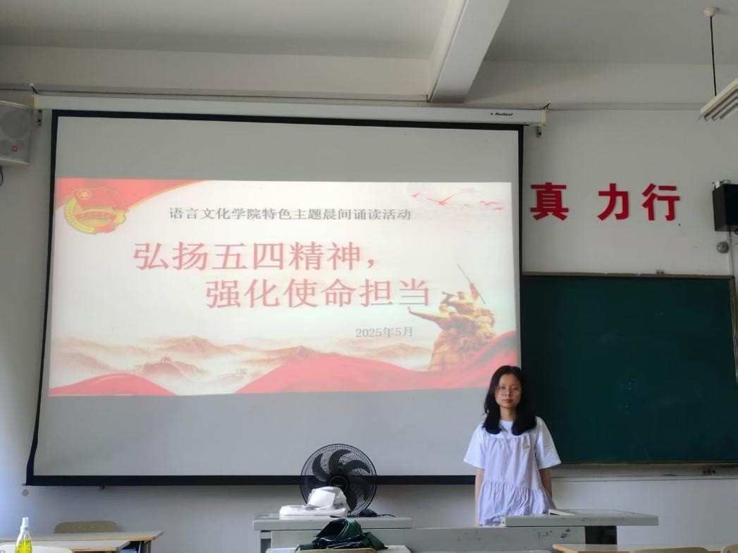 为进一步弘扬五四精神,传承精神内核,赓续历史记忆,凝聚我院青年学子的价值共识,yh1122银河国际团委于5月组织各团支部开展以“弘扬五四精神,展现青春担当”为主题的晨间诵读活动。通过本次活动,我院学子进一步联结历史与现实,深化了对五四精神的理解,激发了责任感和使命感。